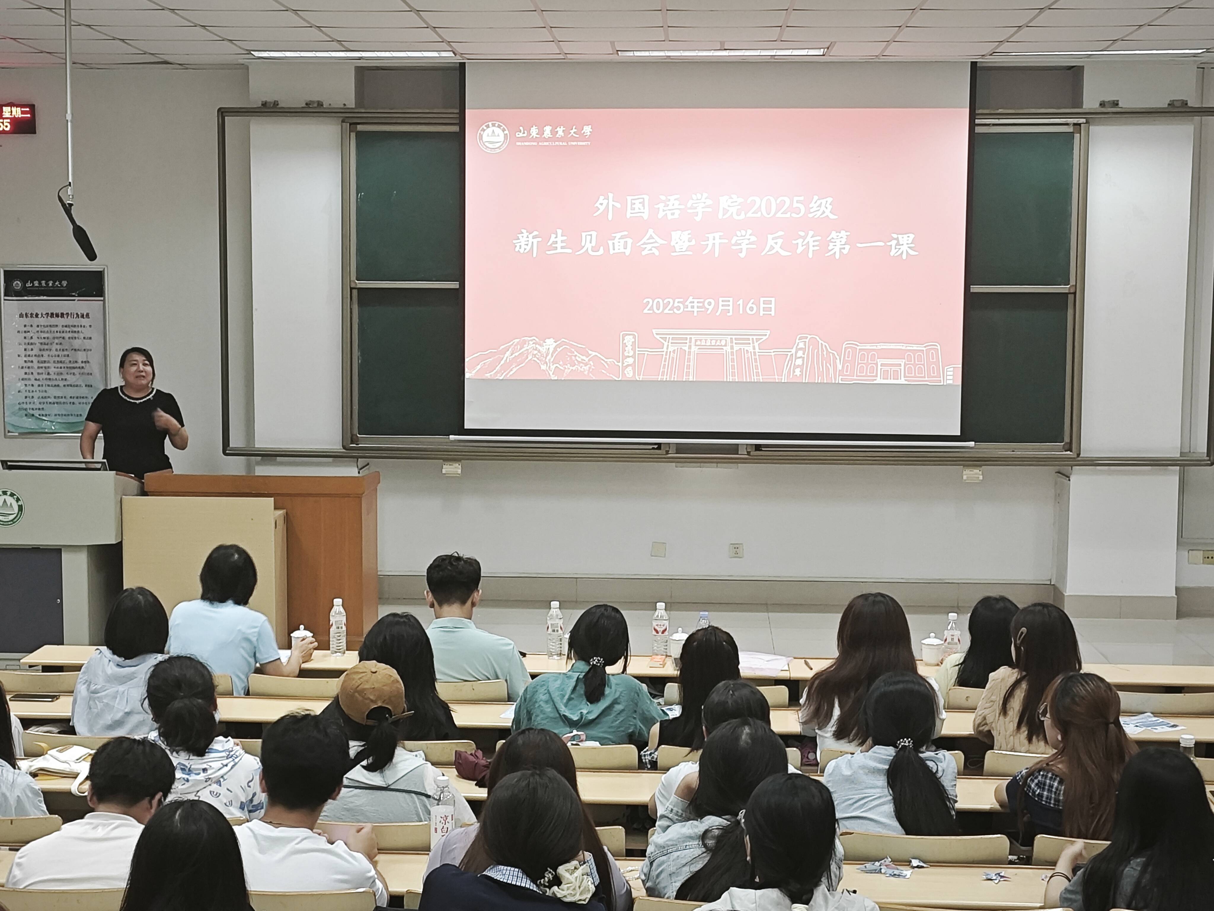 9月16日,外语学院在泮河校区综合楼N202举办2025级新生见面会暨开学反诈第一课,学院党委副书记费美娟、团委书记李娜、新生辅导员庞晓文、2023级辅导员亓俊然出席活动。
