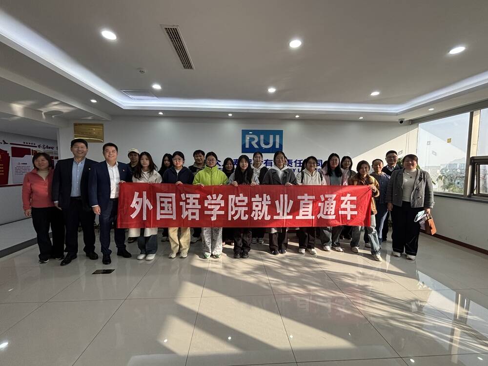 11 月 11 日,外国语学院 “就业直通车” 访企拓岗活动在泰安顺利开展。学院党委副书记费美娟带领 2026 届研究生、本科生毕业生代表先后走访调研了瑞众保险、泰开集团、泰山玻纤三家优质企业。