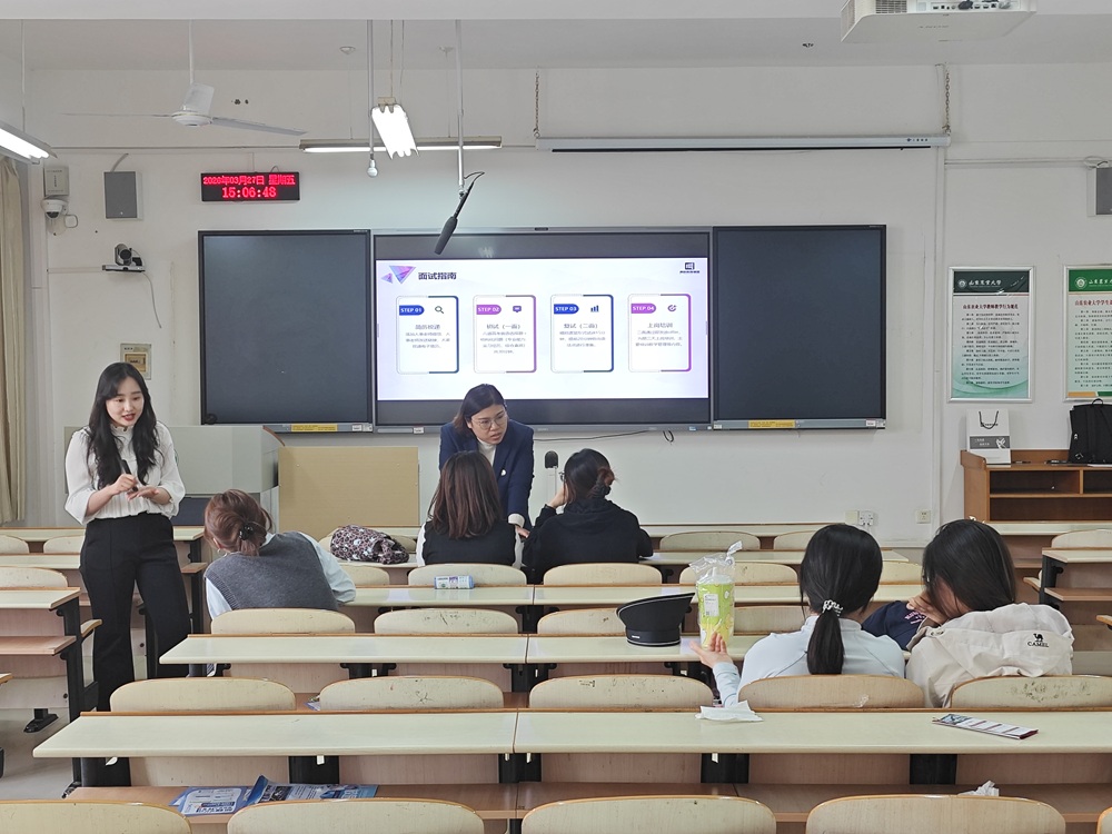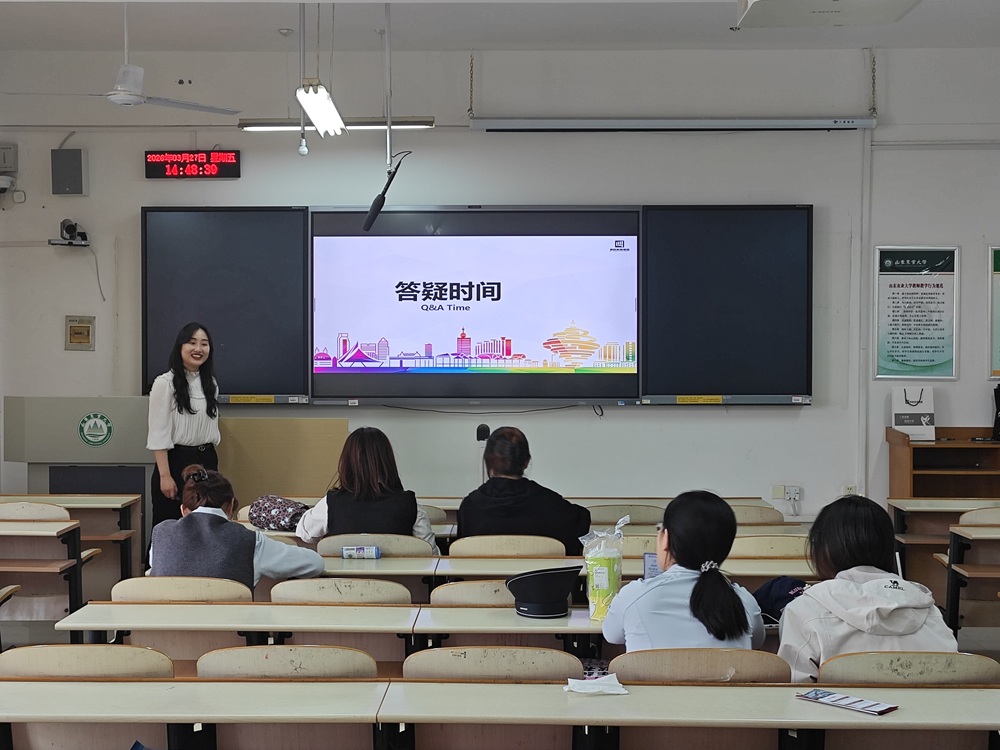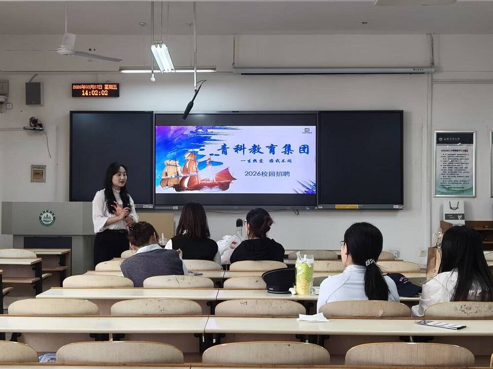 3月27日,山东青科教育科技集团在泮河校区勤学楼S416举办企业专场宣讲会,2026届部分毕业生参加招聘活动。