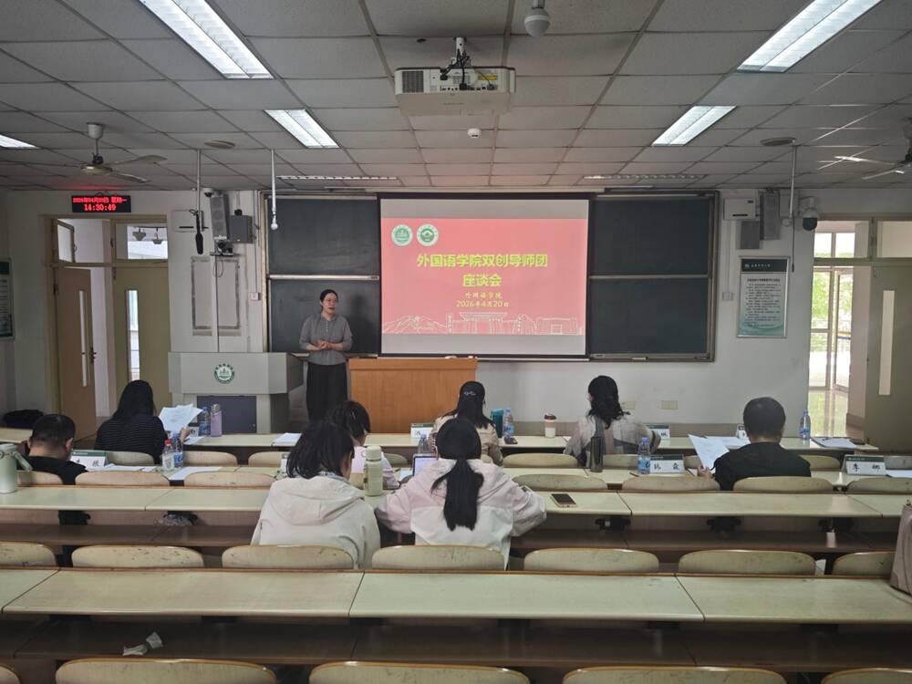 4月20日,外国语学院在勤学楼E308举办双创导师座谈会,本次座谈会由学院各系室教师代表、学院双创重点项目负责人等学生代表参会,双创辅导员刘雅静主持。