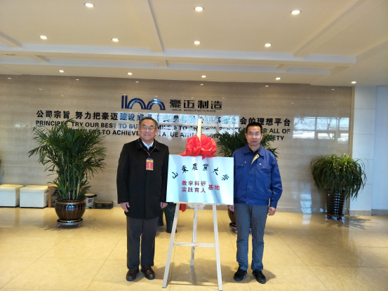 日前,学校在潍坊高密设立科研实践育人基地。12月8日,基地挂牌仪式在高密市山东豪迈机械科技股份有限公司举行。副校长王振林、豪迈集团董事长魏效辉出席仪式并为基地揭牌。