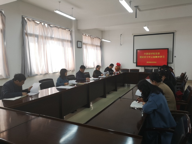 2月23日上午,外语学院党委理论学习中心组开展专题学习,学院领导班子成员、党委委员、支部书记和各系室主任参加学习。