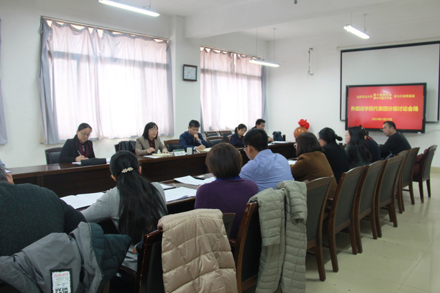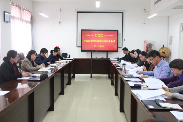 2月24日,山东农业大学第十届教代会暨第十六届工代会第七次全体会议外国语学院代表团分组讨论在文理大楼321召开,学校党委常委、副校长张然,学院双代会代表成员参加讨论。