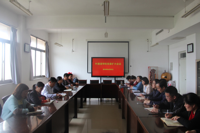 4月23日,外语学院在文理大楼321召开党委扩大会议,学院班子成员、党委委员、支部书记、各系室主任副主任和办公室人员参加会议。