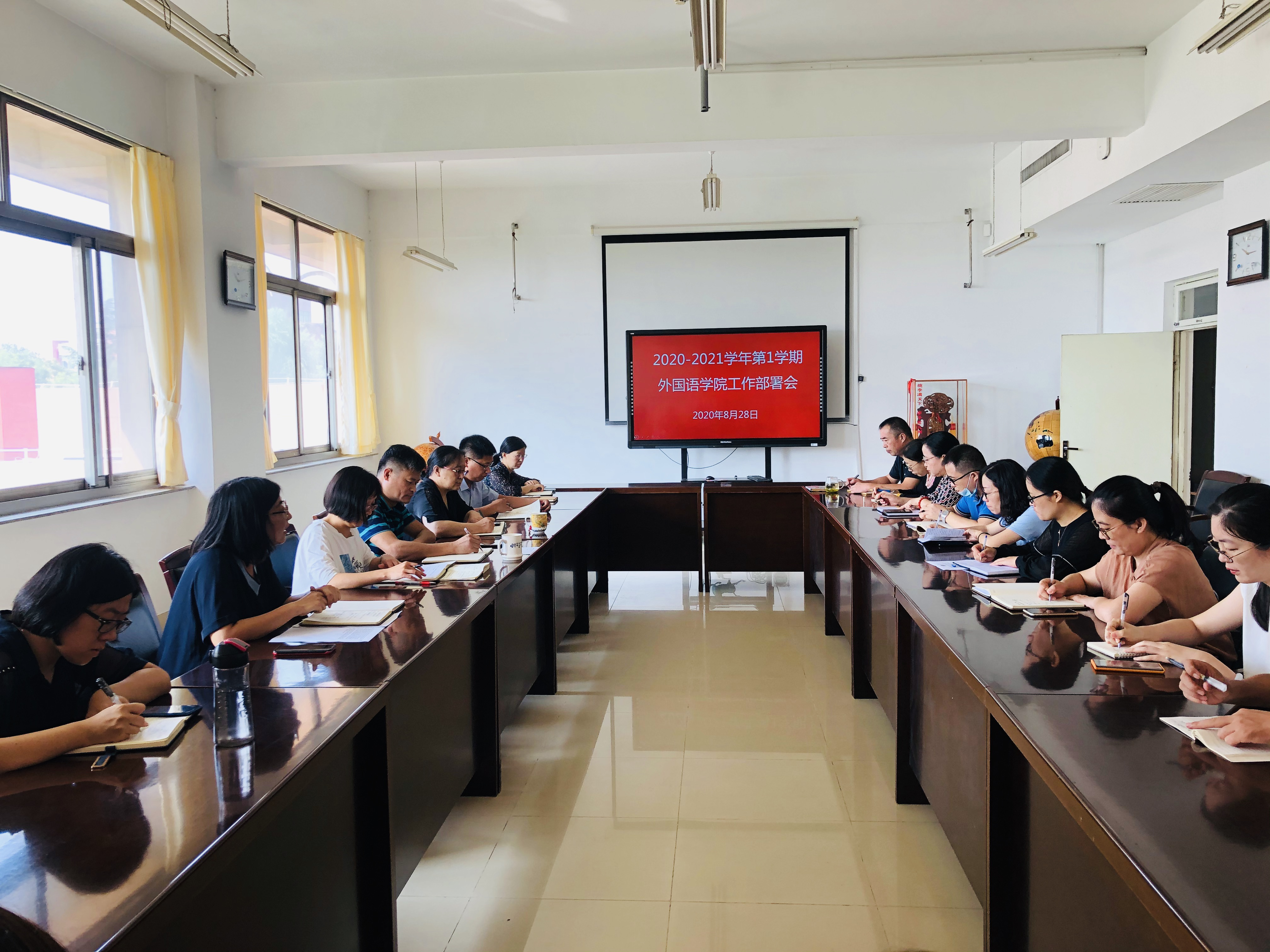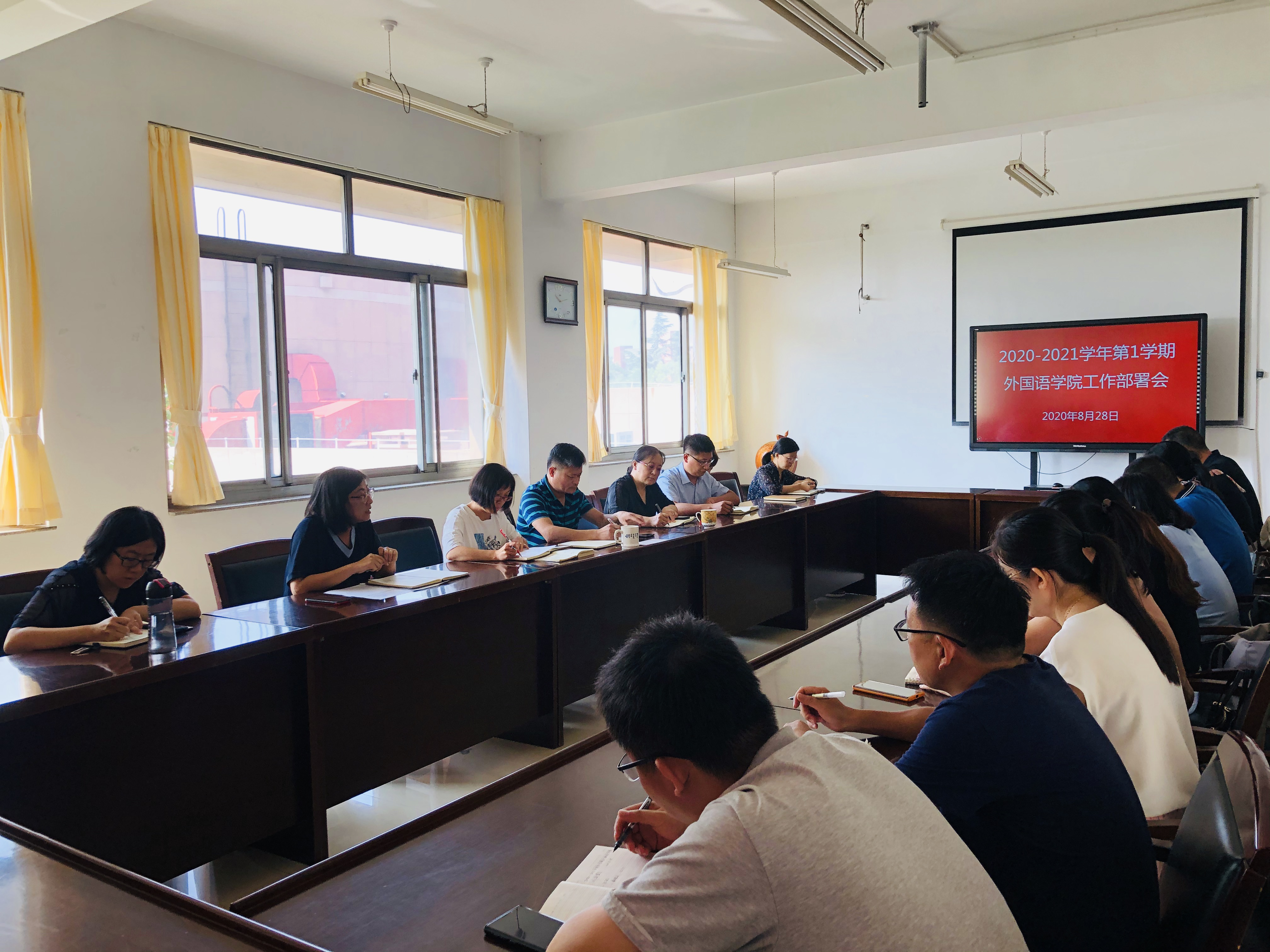 8月28日,外语学院召开新学期工作部署会,学院班子成员,各系室主任、副主任,专业主任和党支部书记参加会议。