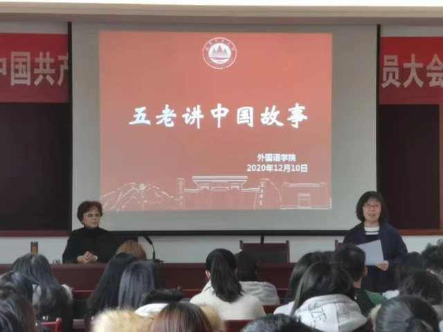 12月11日,外语学院于文理大楼211教室举办“五老讲中国故事”讲座。外语学院原副院长刘燕教授担任主讲人,学院辅导员及2020级学生参加讲座。