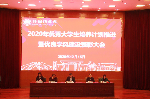 12月15日,外语学院于文理大楼学术报告厅举行2020年优秀大学生培养计划推进暨优良学风建设表彰大会。学院班子成员,教授委员会主任,系室主任和专业主任,ESC计划导师以及2020级、2019级学生参加会议。