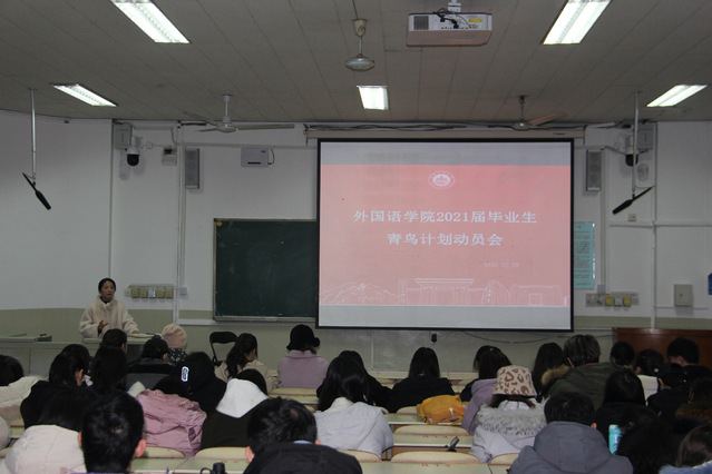 12月28日,外语学院于5N401举办2021届毕业生“青鸟计划”动员会。学院学生工作负责人,就业辅导员和2021届毕业生参加动员会。