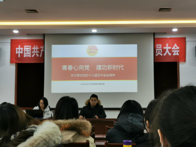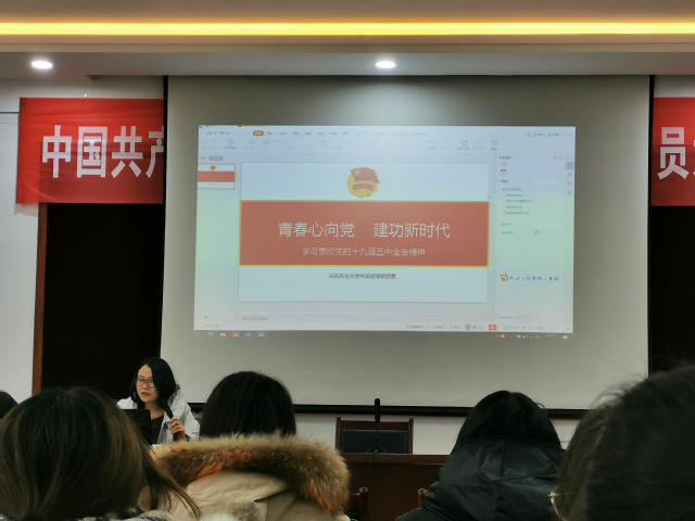 2020年12月30日,外语学院于文理大楼211举办“青春心向党 建功新时代”十九届五中全会精神专题解读报告会。学院兼职辅导员、马克思主义学院优秀青年讲师马军民担任主讲。学院辅导员,全体学生党员,入党积极分子及部分班长团支书和青年学生参加报告会。