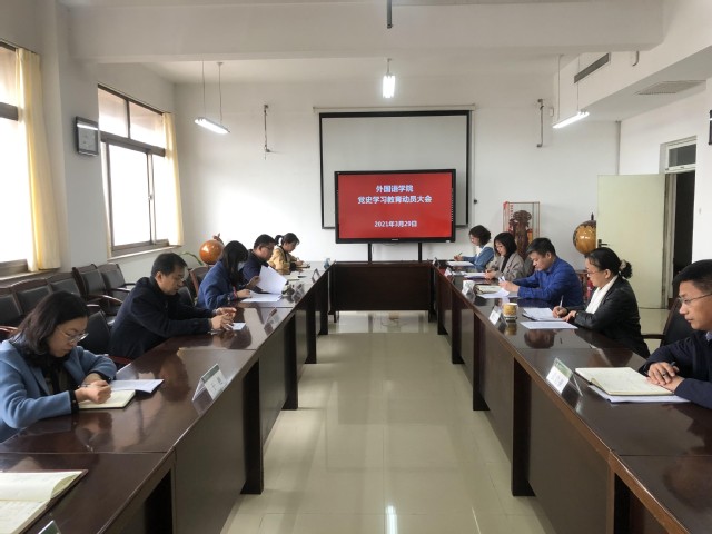 3月29日,外语学院于文理大楼321召开党史学习教育动员大会,学院党委委员、党支部书记和全体辅导员参加会议。