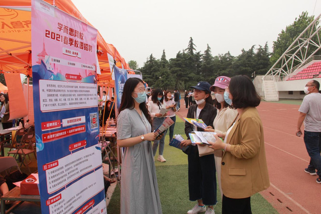 5月15日,山东省2021年农林水类毕业生就业市场在山东农业大学南校区举办。外语学院2017级在校毕业生,学院班子、各系室主任专业主任和全体辅导员参加招聘会。