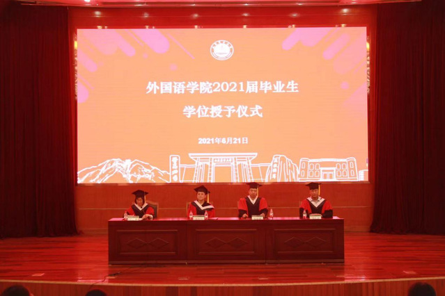 6月21日,外语学院在文理大楼报告厅举办2021届毕业生典礼。学院班子成员、教授委员会主任、各系负责人、2021届全体毕业生及部分在校生代表参加活动。