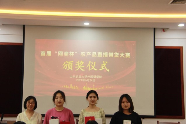 6月24日,外语学院在文理大楼211举办网商杯农产品直播带货大赛颁奖仪式,活动圆满落下帷幕。学院班子成员、山东网商集团工作人员、辅导员和参赛学生代表参加活动。