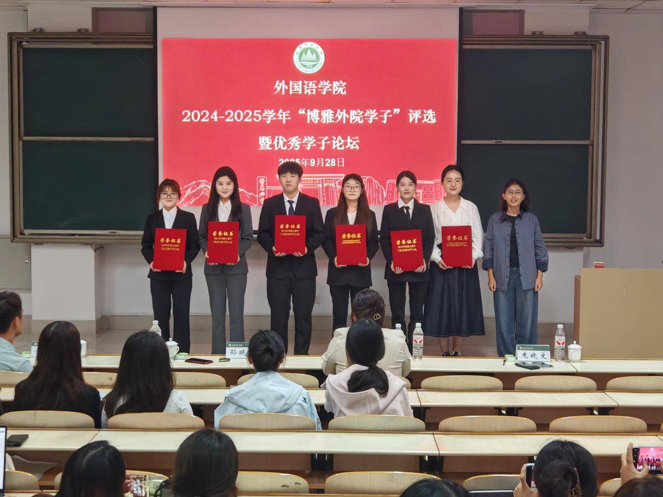 “博雅外院学子”评选大会自2011年以来已举办五届,历年评选出的优秀学子毕业后,在不同领域绽放光彩,以心怀梦想、挺膺担当的青春风貌,持续激励着外语学院的同学们锐意进取、开拓创新。未来,希望这10位同学以后更加严于律己,笃行不怠,书写更精彩的篇章。外语学院也将持续优化育人平台,为每位学子的梦想保驾护航,助力他们在成长道路上乘风破浪,逐光前行。