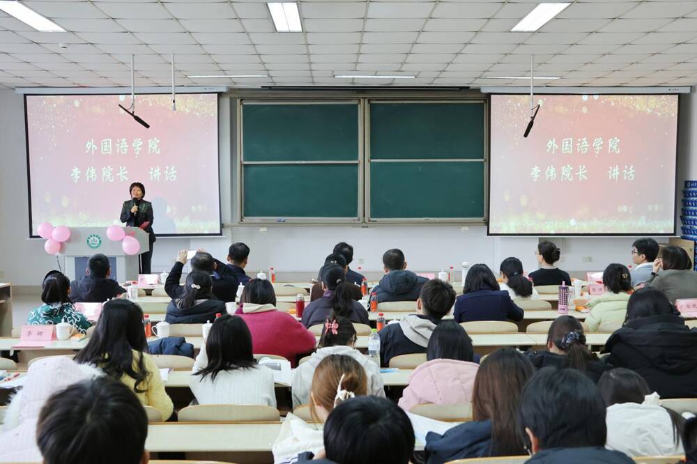 会上,学院院长李伟回顾学院一年来在教师队伍建设、毕业生升学深造、学科竞赛等方面取得的优异成绩,并向同学们提出三点期望,一是铸魂强基,以理想信念领航青春,将个人理想融入时代洪流,在语言学习中深化对中华文化的认同,同时拓宽国际视野,主动承担文明交流的使命,用世界听得懂的语言讲好中国故事;二是躬身实践,以主动吃苦锤炼青春,继续发扬主动精神,勇于在挑战中磨砺意志,在实践中检验所学、增长才干,把论文写在齐鲁大地上,用脚步丈量成长的维度;三是精进不止,以智慧勤学照亮青春,保持终身学习的态度,在反思中优化方法,在融合中突破边界,不断夯实专业根基,在探索中沉淀智慧,让人工智能时代的外语人更具辨识度与创造力。